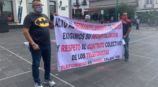 XALAPA, VER.- Telefonistas de México protestaron frente a Palacio de Gobierno contra TELMEX por la falta del pago de utilidades.