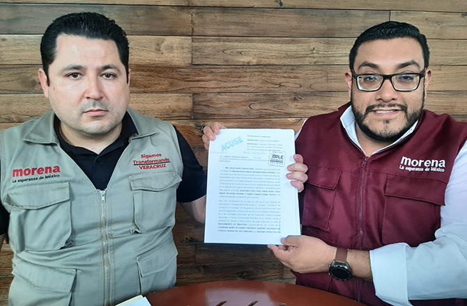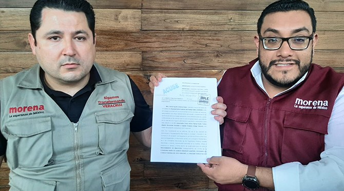 Xalapa, Ver; 11 de junio de 2021.- Al evidenciar que el consejero presidente del consejo municipal del Organismo Público Local Electoral de Veracruz, Roberto Castillo Gutiérrez, actúa de manera parcial a favor del Partido Acción Nacional y hace todo lo que le ordena el PAN, en el conteo de votos de la elección de 6 de junio, los representantes de Morena ante los órganos electorales, Gabriel Zúñiga y David Agustín Jiménez Rojas, solicitaron la remoción de este y de la consejera María de Lourdes Fernández Martínez.
