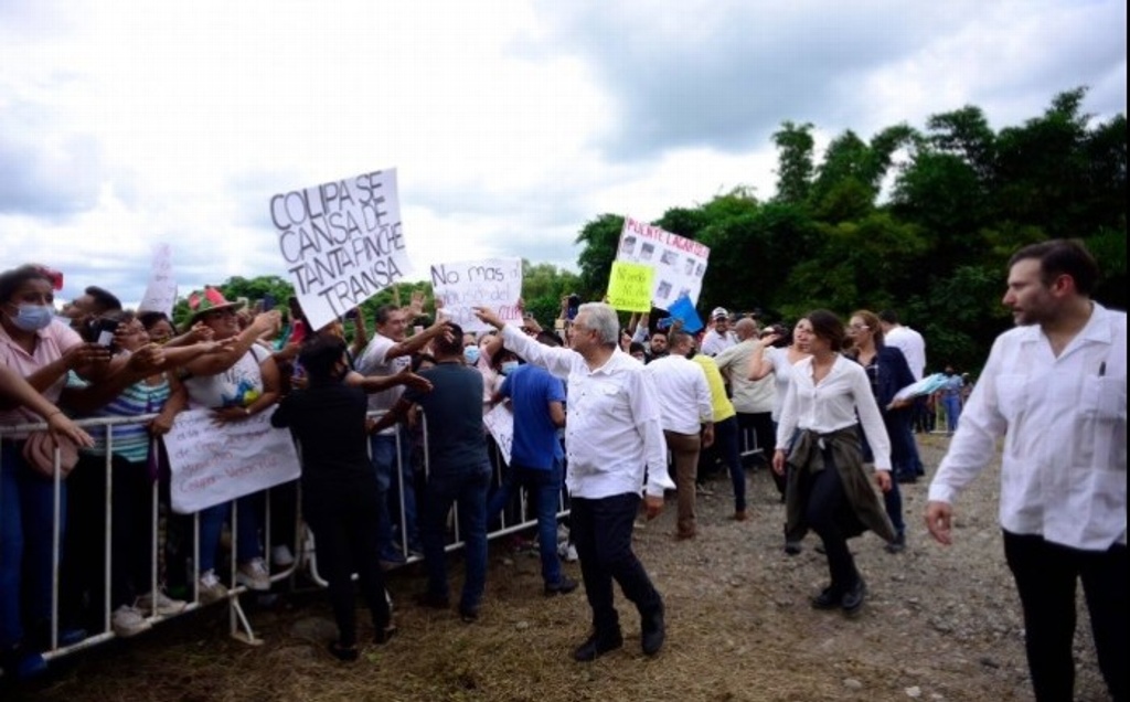 Se trató de la primera visita del Ejecutivo federal a la entidad luego del proceso electoral, y acudió a supervisar una carretera que acortará distancias entre la costa central y el norte de la entidad, pero que generó inconformidades entre los habitantes de una comunidad.