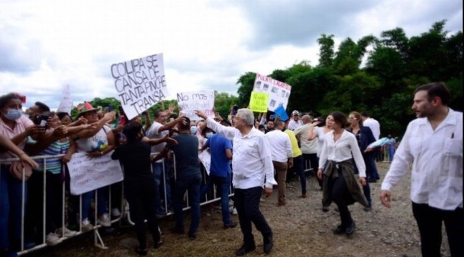 De visita por Martínez de la Torre, el presidente Andrés Manuel López Obrador fue recibido por manifestantes el viernes.