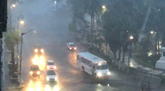 La lluvia que se registra está acompañada de tormenta eléctrica, a su vez viento arrachado.