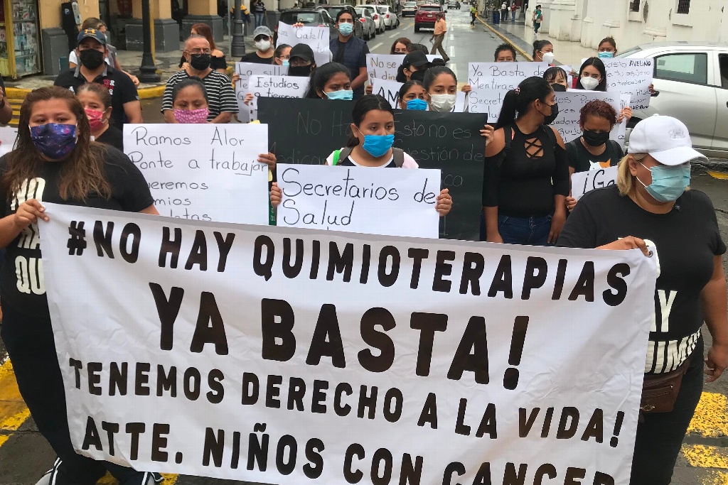 Un grupo de madres de familia marchan durante la mañana de este miércoles desde el Zócalo de Veracruz al Hospital Infantil para demandar la falta de quimioterapias y falta de medicamentos para niños con Cáncer.