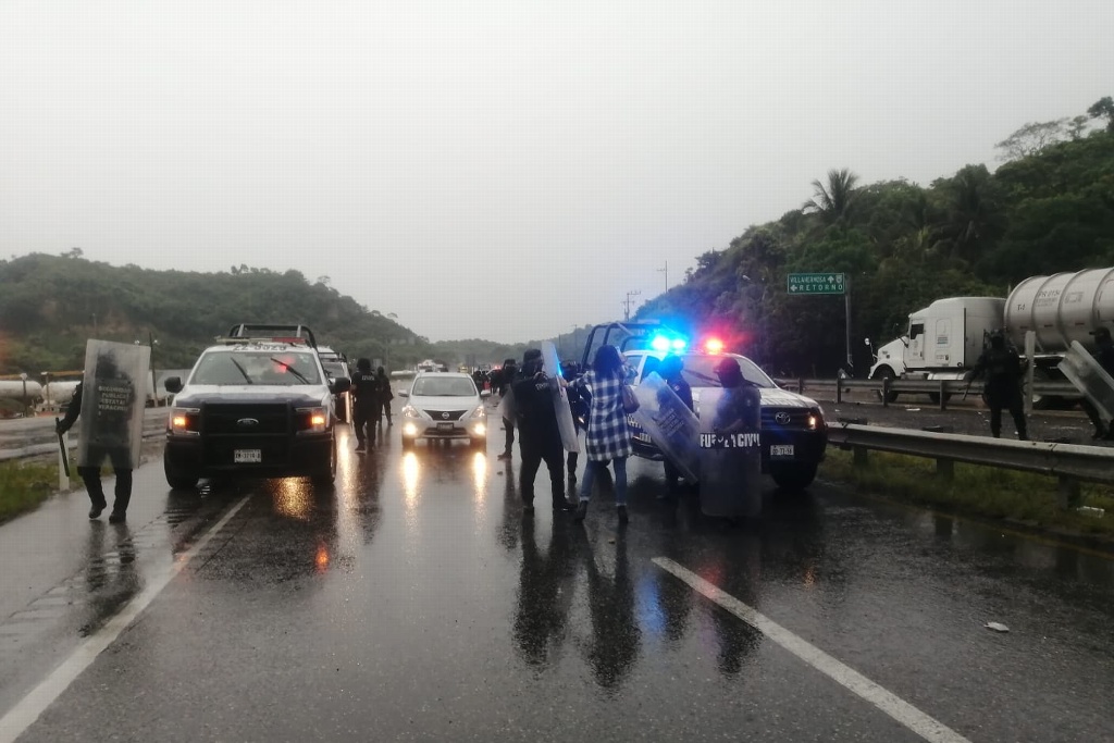 Tras el bloqueo de la carretera Coatzacoalcos – Villahermosa a la altura de Nuevo Teapa, al sur de Veracruz, la mañana de este sábado elementos de la Policía Estatal intentaron desalojar la vialidad.