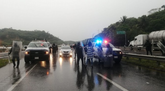 Tras el bloqueo de la carretera Coatzacoalcos – Villahermosa a la altura de Nuevo Teapa, al sur de Veracruz, la mañana de este sábado elementos de la Policía Estatal intentaron desalojar la vialidad.