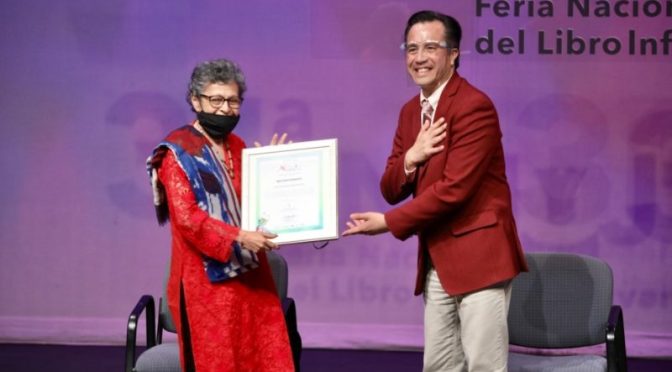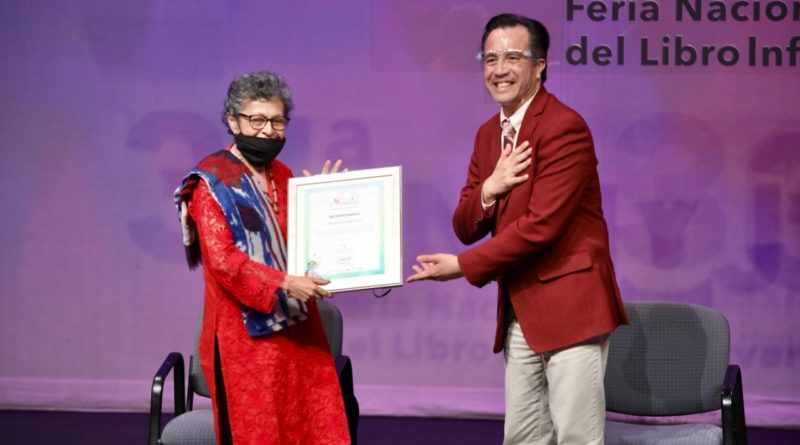 En el Teatro del Estado, el mandatario entregó merecido reconocimiento a tres veracruzanas que han dedicado su vida a las letras: Ester Hernández Palacios (escritora, investigadora y académica), Leticia Tarragó (ilustradora de numerosas colecciones editoriales y libros de texto) y Mercedes Lozano Ortega (exdirectora de la Facultad de Letras Españolas de la Universidad Veracruzana).