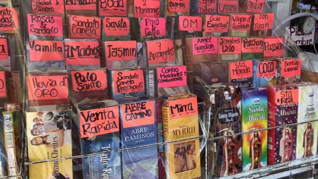“Para la salud hay como amuletos, hay veladoras que son para la salud, igual para retirar todo eso se necesita un ramo de limpia; en estos días buscan limpiarse y retirar todas las malas energías”, comentó Berenice Sayuri Sayas Reyes, comerciante de productos esotéricos.