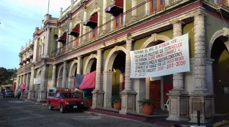 Atzalan, Veracruz., 13 de julio de 2021.- A más de dos meses de haber estallado la huelga en el ayuntamiento de Atzalan por parte de los empleados municipales, el alcalde José Homero Domínguez Landa, se ha negado a dar respuesta a sus demandas, a pesar de que el Tribunal de Conciliación y Arbitraje resolvió como legal el movimiento parista.
