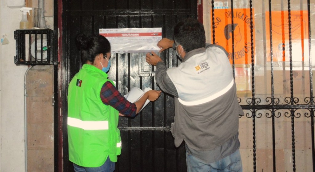 Xalapa, Ver., 13 de julio de 2021.- En seguimiento al acuerdo para la modificación del Plan de Reactivación Económica a la Nueva Normalidad y con base al semáforo epidemiológico actual, la Secretaría de Salud a través de Protección contra Riesgos Sanitarios, llevó a cabo la suspensión de 10 establecimientos con actividad no esencial en 5 ciudades con semáforo rojo, naranja y amarillo.
