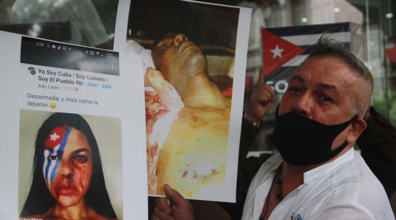 Xalapa, Veracruz., 14 de julio de 2021.-Un grupo de cubanos asentados en Veracruz protestaron en esta capital para protestar por las acciones que lleva el régimen de Miguel Díaz-Canel en la isla; piden la liberación de activistas y periodistas.