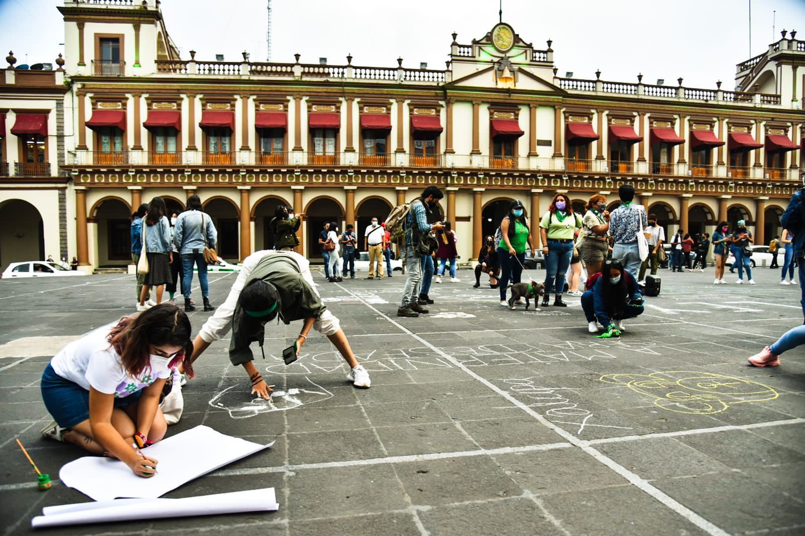Convocadas por el colectivo de las “morras organizadas de Xalapa” un grupo de mujeres vestidas de negro y con pañuelos verdes se concentraron en la Plaza Sebastián Lerdo de Tejada para festejar la decisión de la legislatura local.