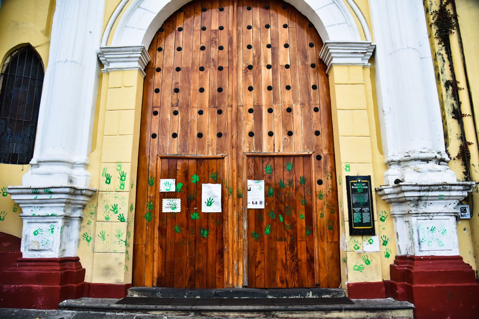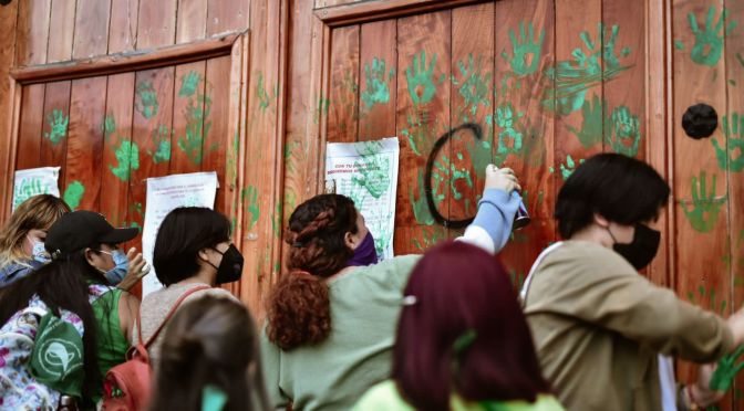 Armadas con botes de pintura verde pintaron manos en la fachada de la Catedral metropolitana de Xalapa y escribieron mensajes pro aborto.