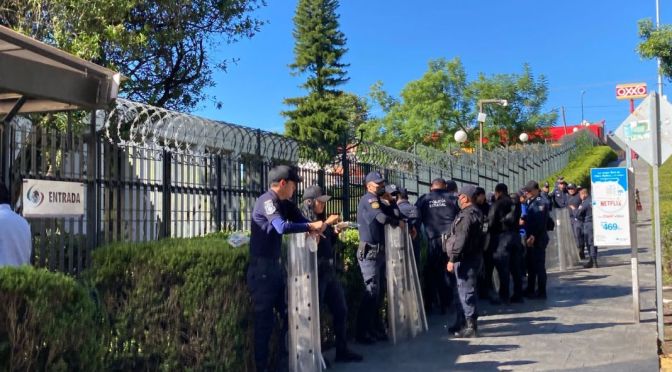 Xalapa, Ver. 20 de julio 2021.- Por una advertencia de manifestación y posibles disturbios en las inmediaciones del Congreso del Estado, el cuerpo de granaderos de la Secretaría de Seguridad Pública de Veracruz mantiene resguardada la entrada al recinto.