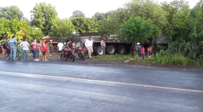 Se trató de la unidad dedicada al transporte de materiales para la construcción, el cual su operador mencionó que perdió el control del trailer, ya que un mototaxi invadió su carril y para no chocar de frente este maniobró de manera brusca.
