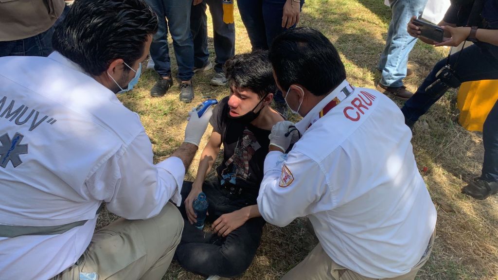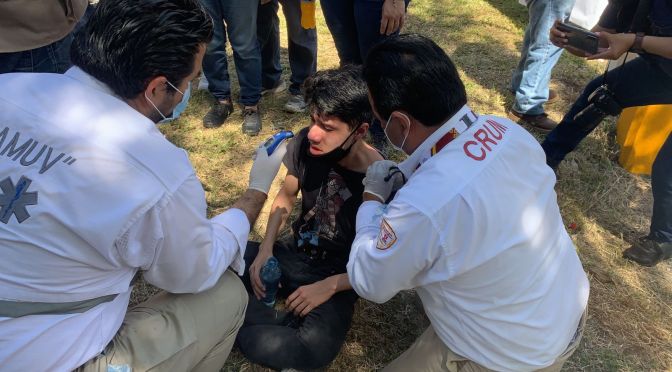 El muchacho fue auxiliado por una ambulancia de atención a emergencias de los Servicios de Salud de Veracruz y valorado, no presentó daños serios más que golpes contusos en abdomen y espalda.