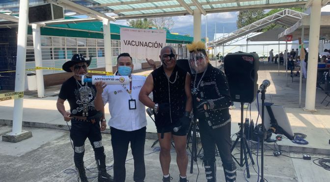 Con temas como “Mándame un whatsapp”, “macorina”, “La tanguita Roja” y el “Teibolero” los Súper Caracoles llenaron de alegría a los xalapeños mientras aguardaban la aplicación de se segunda dosis.