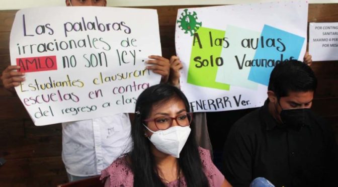 Lorena Ixtepan Martínez, coordinadora estatal de esta organización estudiantil en Veracruz, detalló que su exigencia se deriva del anuncio dado por el presidente Andrés Manuel López Obrador y secundado por el gobernador Cuitláhuac García Jiménez, de retornar a clases de manera presencial.