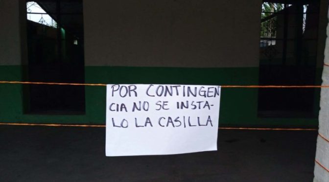 La casilla electoral se instala de manera tradicional en el salón de usos múltiples, pero con firmas «falsas que el agente municipal entregó al INE no se instalaron las urnas y por ello nadie votó».