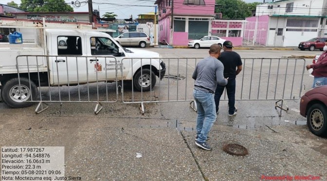 Minatitlan, Ver 5 agosto 2021.- La Direccion de Transito y Vialidad de Minatitlan ha informado del cierre de la calle Moctezuma, tramo comprendido entre Profesorado y Justo Sierra.