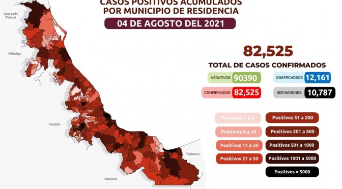 De los casos positivos, 4 mil 952 son activos, es decir que presentaron síntomas en los últimos 14 días.nullTags: Veracruz, COVID-19, pandemia, contagios, muertes, xeu, xeu.mx
