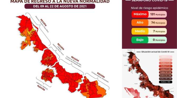 Semáforo de Riesgo Epidemiológico La Federación mantiene a Veracruz en color naranja (riesgo alto) del Semáforo de Riesgo Epidemiológico, aplicable del 09 al 22 de agosto.