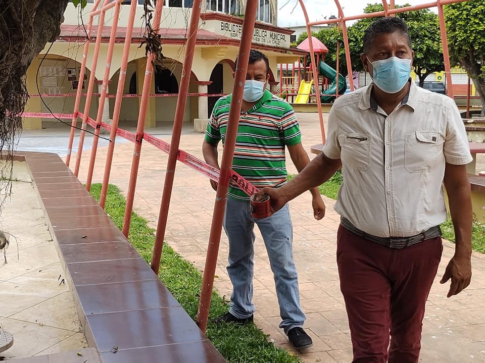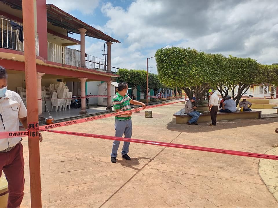 Se efectuó el acordonamiento del parque central de Villa Cuichapa y la cabecera municipal, así como los domos, para evitar la concentración de personas y con ello reducir la movilidad que hagan frente al riesgo de contagios.