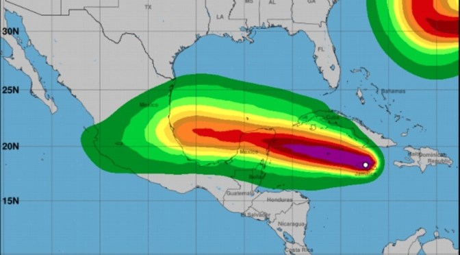 De acuerdo con la dependencia, el huracán primero de categoría 1, podría ingresar a través de las costas de Quintana Roo hacia el jueves y desplazarse sobre el suroeste del golfo de México y continuar su desplazamiento hacia las costas de Tamaulipas y Veracruz.