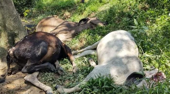 Hace una semana se registró la muerte de al menos 11 reses en la zona de Moloacán luego de haberles caído un rayo durante una de las tormentas.