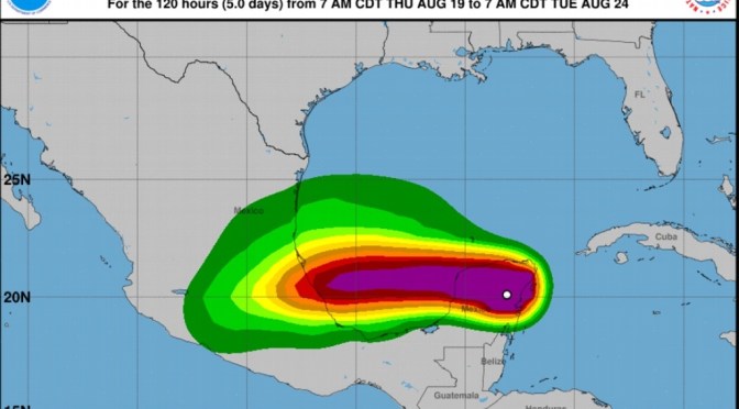 10:00 Hrs. #TormentaTropical #Grace con centro localizado a 180 km al este de Campeche y 135 km al oeste de Tulum, presenta vientos máximos sostenidos de 100 km/h y se mueve al oeste a 30 km/h. pic.twitter.com/bNbw0NEAb1— MeteorologíaSPCVer (@spcver) August 19, 2021