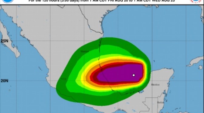 «Se pronostica que Grace toque tierra la noche de hoy viernes 20 de agosto o en las primeras horas del sábado en la costa norte de Veracruz entre Tuxpan y Nautla, me están reportando que en este momento a las 7:15 de la mañana que ahora se reporta nuevamente como huracán, huracán categoría 1, ingresando en el transcurso de la noche, repito al territorio nacional, ingresando por Veracruz».