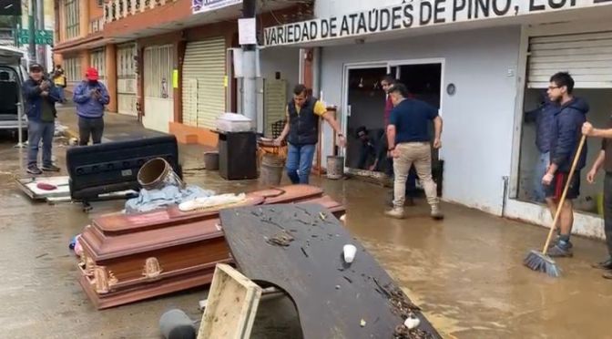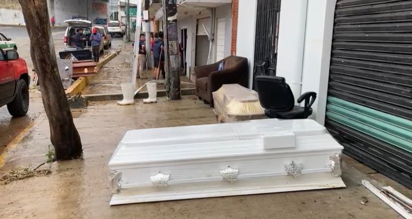 XALAPA, VER.- Funerarias del norte de la ciudad de Xalapa perdieron sus ataúdes durante las inundaciones de este sábado.