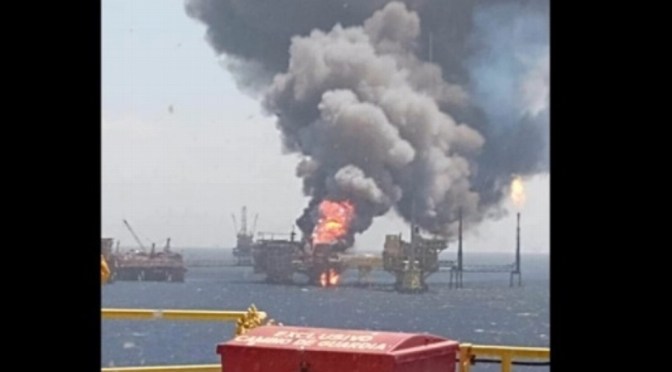Petróleos Mexicanos (Pemex) informa en un comunicado un fallecido por el incendio en una plataforma ocurrido este domingo y destaca que busca a personal desaparecido; asegura que apoya trabajadores afectados: