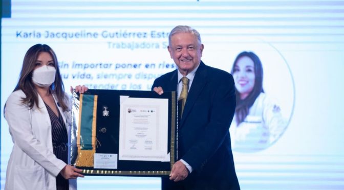 “Felicidades a quienes reciben estos reconocimientos. Son heroínas, son héroes porque están atendiendo enfermos, a quienes han sido afectados por COVID, por esta terrible pandemia que tanta tristeza nos ha dejado.