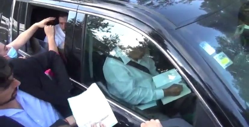 A su llegada ya lo esperaban cientos de ciudadanos con peticiones que no pudieron entregarle por la restricción del acceso al recinto, sin embargo xalapeños se las ingeniaron para abordarlo a su llegada.