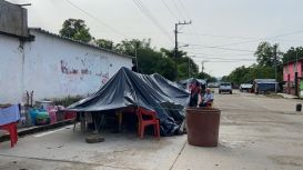 Jesús Carranza, Ver. 27 de agosto 2021.- Con bolsas de plástico, estructuras de fierro, palos y láminas, habitantes improvisaron campamentos sobre la calle Aldama en el municipio de Jesús Carranza, luego de que se desbordaran los ríos por las intensas lluvias que se han registrado en los últimos días.