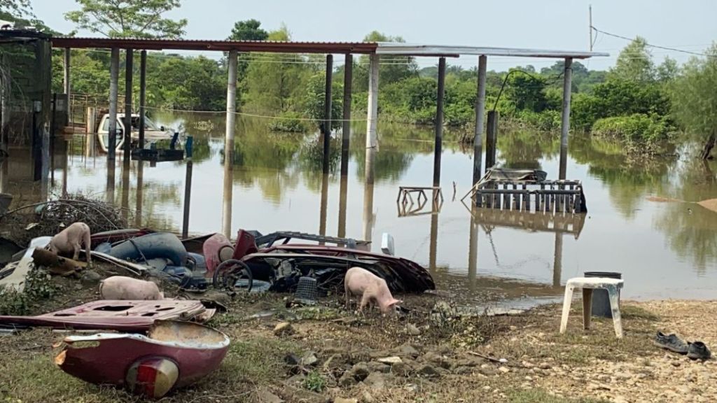 Más de dos días llevan familias viviendo en la intemperie porque sus viviendas quedaron bajo el agua, apenas lograron rescatar algunas pertenencias como camas, roperos, lavadoras, estufas, comedores, electrodomésticos y hasta sus animales como cerdos, perros y pollos.