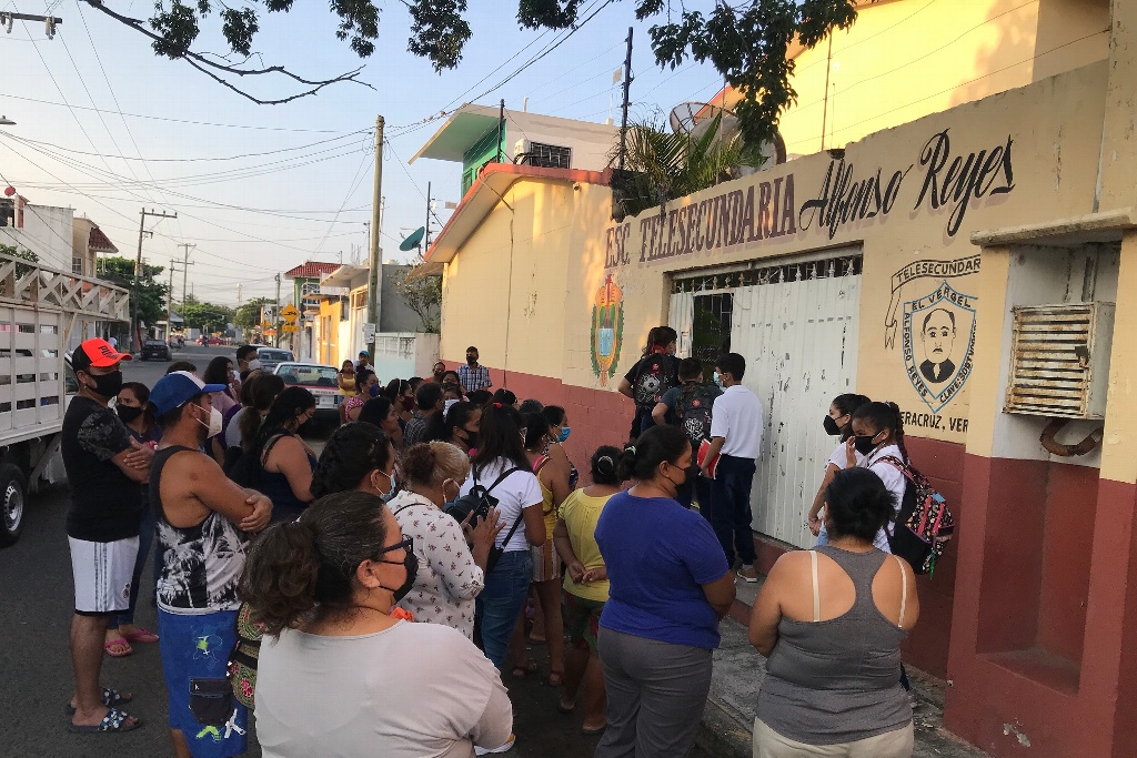 Fue en la telesecundaria “Alfonso Reyes” en este municipio de Veracruz, donde llegaron los alumnos con sus papás para formarse, en varias ocasiones sin la “sana distancia” como se recomienda, y los adultos juntos en espera de que sus hijos entraran para comenzar el nuevo ciclo escolar.
