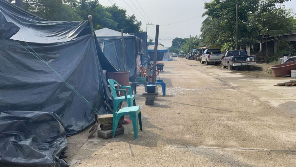 Actualmente sobre la calle Aldama existen cerca de 15 a 20 campamentos, ya que se prevé otra creciente este mes y para evitar doble trabajo mantienen sus pertenencias resguardadas en este punto y en tanto terminan de limpiar su hogares.