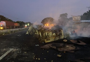 Informa que en el accidente vehicular, ocurrido a la altura de la localidad Buena Vista del municipio de Emiliano Zapata, se vieron involucrados dos tractocamiones.