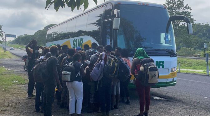 Sin embargo algunos lograron tomar otro autobús con destino a Coatzacoalcos, pero lo tomaron metros después del retén, la mayoría ya traía un boleto en mano, y es que al percatarse que migración los baja de las unidades para que sigan caminando, algunos choferes que los trasladan de Las Choapas a Coatzacoalcos, decidieron bajarlos antes del retén para que lo pasen caminando y más adelante los recogen.