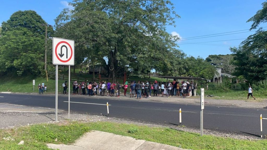 Pagamos cien pesos, pero la migración nos bajó en el retén, vamos a seguir a pie”, expresó un haitiano mientras cargaba a su hijo en los hombros.