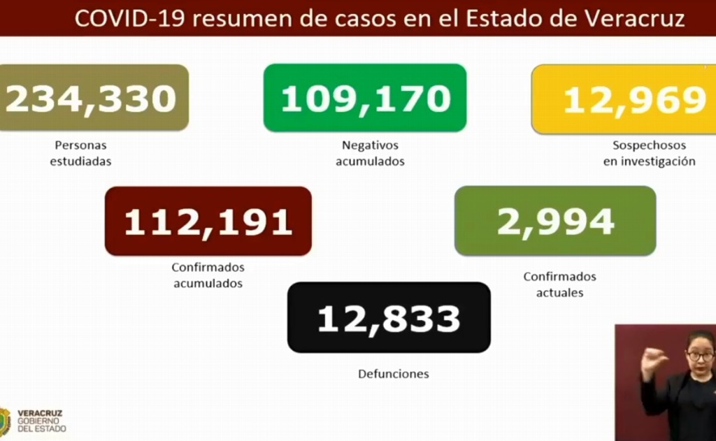 Asimismo, el director de Salud Pública, Salvador Beristain, dio a conocer que ya se acumulan 112 mil 191 casos confirmados, de los cuales 2 mil 994 siguen activos.