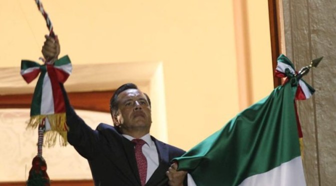 Xalapa, Ver.-El gobernador de Veracruz, Cuitláhuac García Jiménez, dio el «Grito de Independencia» a las 11:00 de la noche de este miércoles 15 de septiembre.