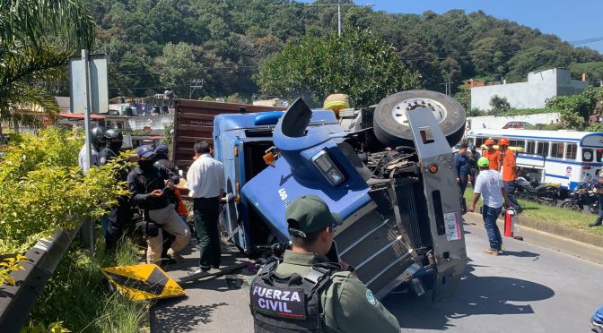 El conductor de la pesada unidad aparentemente perdió el control y terminó volcándose a la altura de la zona conocida como La Martinica sin llevarse otras unidades.