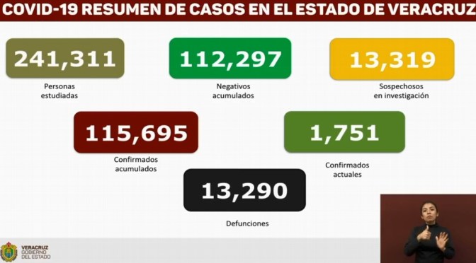 La Secretaría de Salud de Veracruz reportó este viernes 24 de septiembre que ya suman 13 mil 290 fallecimientos por COVID-19 en la entidad desde el inicio de la epidemia.