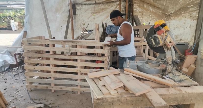“Aquí nos mantenemos alrededor de 40 familias, nosotros desde una base de cama matrimonial, individual, comedores, casas pa perros, si es posible hasta cabañas con pura madera reciclada palet, toda la madera que nos traen de hecho traileros pasan y nos venden”, comentó.