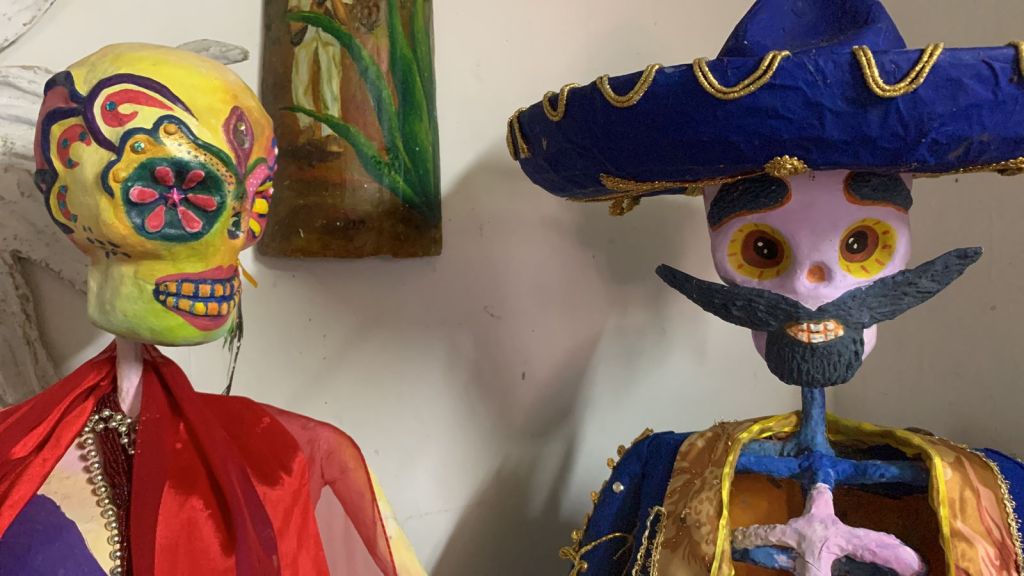 La maestra Gladys tiene un taller permanente durante todo el año, sin embargo, en los últimos meses saca del baúl los moldes de calavera y crea coloridas versiones de la catrina de José Guadalupe Posada.