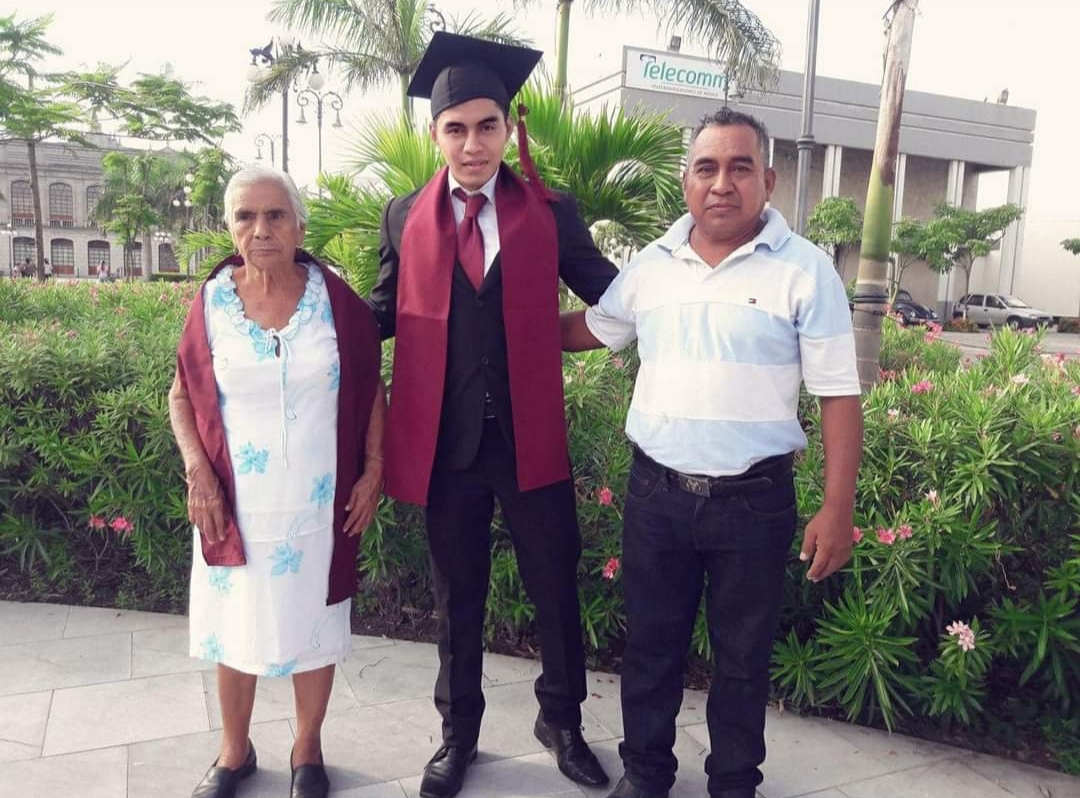 El es Luis Felipe Vazquez Lopez un joven como muchos de nosotros con muchos mas sueños y metas por lograr, apenas hace una semana le otorgaron su título de pedagogía, que con el apoyo de su abuelita y su papa puedo lograr con tanto esfuerzo