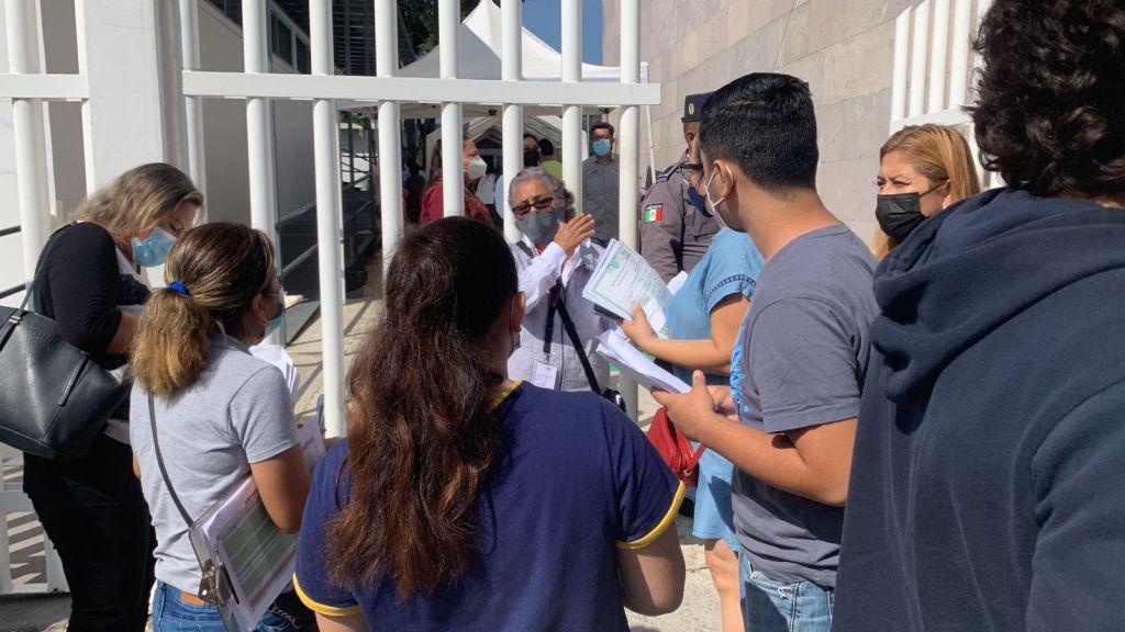 Desde las 10 de la mañana de este 13 de octubre la Secretaría del Bienestar habilitó la sede de vacunación en la clínica Gastón Melo en el centro de Xalapa para recibir a los cientos de adolescentes quienes con evidente entusiasmo arribaron acompañados de sus padres para recibir su primera dosis de Pfizer.