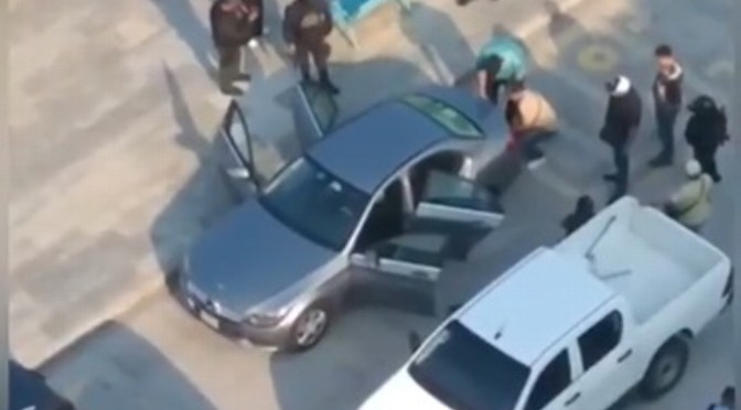 Usuarios grabaron el momento de los hechos, en donde se observa que de varias camionetas, sujetos bajan y se llevan a una persona, para posteriormente huir.