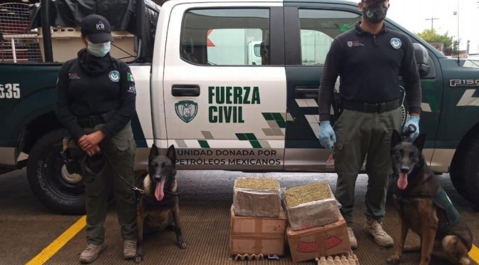 Xalapa, Ver., 22 de octubre de 2021.- Como parte de las acciones para la prevención del delito en la entidad, la Secretaría de Seguridad Pública (SSP), a través de la Compañía K-9 de Fuerza Civil, aseguró tres paquetes con marihuana, durante inspecciones registradas en las sucursales de una empresa de paquetería, ubica